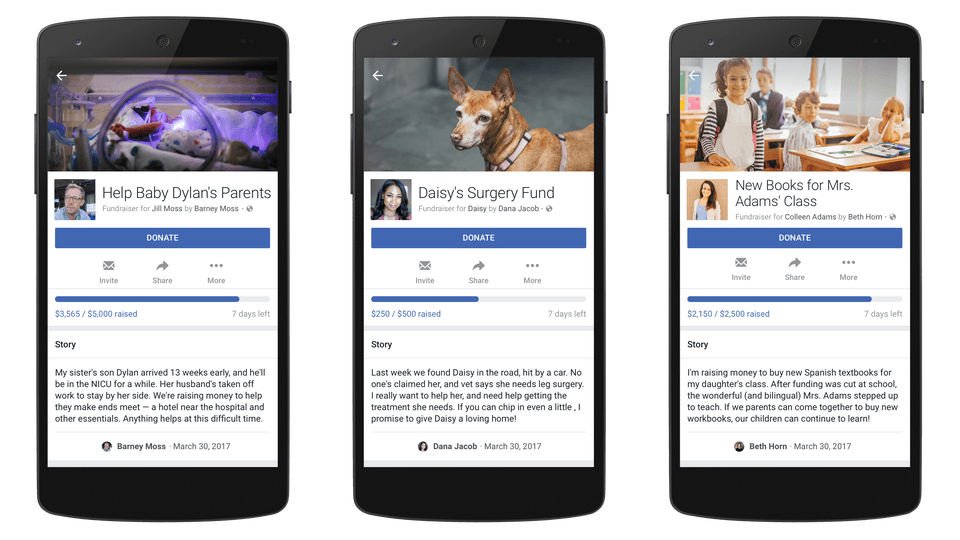 18 yaş ve üzeri kullanıcıların faydalanabileceği kişisel bağış kampanyalarını oluşturan kullanıcılar arkadaşlarıyla paylaşım yapabiliyor ve direkt olarak Facebook üzerinden bağış hedefine yürüyebiliyor. Yeni kişisel bağış kampanyaları şu anda Facebook'un kontrolünden geçtikten sonra yayınlanıyor ancak ilerleyen aşamada bu sürecin nasıl işleyeceği meçhul. Zira Facebook Aralık 2016 itibarıyla günlük 1,23 milyar aktif kullanıcıya sahip bir ağ ve elle kontrole izin verilemeyecek kadar çok kişinin kişisel bağış kampanyası oluşturacağını söylemek mümkün.