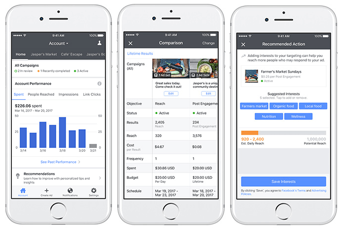 Facebook'un resmi blogunda paylaşılan bilgilere göre artık Reklam Yöneticisi Uygulaması’nda işletmeler hangi yöntemle en verimli sonuca ulaşabileceklerini görebilecek. Aynı zamanda yüksek performanslı reklamları tekrar devreye alabilecek, yeni ilgi alanları ve hedef ekleme ile reklamları karşılaştırmaya yönelik “tek tık” seçeneğinden faydalanabilecek.