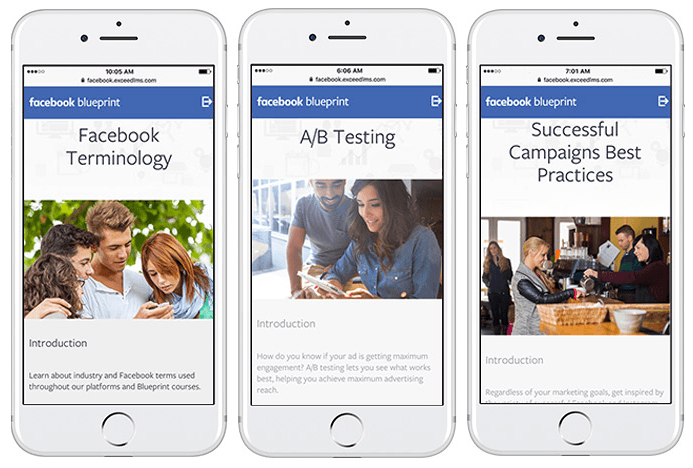 İşletmeler, Mobil Stüdyo ile mobil cihazlar üzerinden daha iyi reklamlar oluşturulabilecek. Blueprint e-eğitim sistemi 10 farklı dilde kullanılabilecek ama maalesef Türkçe o diller arasında gözükmüyor. Bugüne kadar 150 ülkede, 2,5 milyarın üzerinde elektronik eğitim kursu alındı. Facebook'un verdiği bilgiye göre Blueprint artık 1 milyondan fazla kullanıcıya erişiyor ve bu kitlenin yüzde 50'sini KOBİ'ler oluşturuyor.