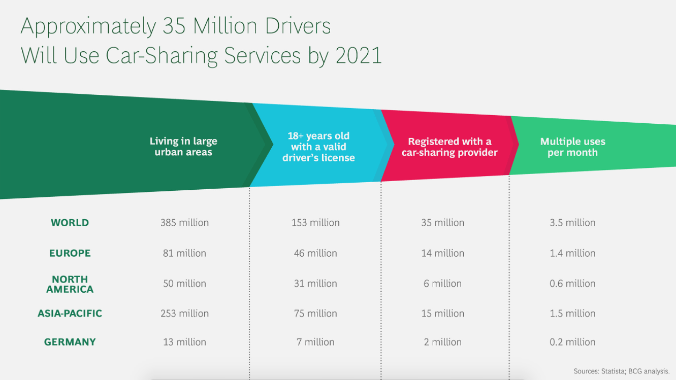 BCG, paylaşımlı otonom araçlara geçişin sürücüler için yüzde 60'a kadar tasarruf sağlayabileceğini söylüyor ve bu alanda küresel pazara dair bilgiler de paylaşıyor. 2021'de dünya çapında kabaca 35 milyon sürücünün araç paylaşım servislerini kullanacağını söyleyen BCG, otonom araç teknolojilerinin bu alanda çarpıcı bir değişim yapacağını da paylaşıyor.