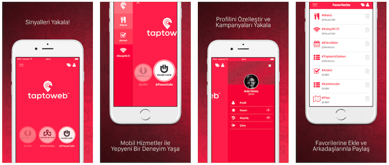 'Sinyalleri yakala' mottosunu kullanan Taptoweb, beacon cihazları ve mobil uygulamasıyla işletmelerin müşterileri ile etkileşimini artırmayı hedefleyen bir girişim. Örneğin bir restorandaki menü bilgilerini Tabtoweb uygulamasıyla görebiliyor veya bir müzedeki eserler hakkında aynı şekilde kolayca bilgi alabiliyorsunuz. Fotoğraf, ses ve video destekli ürün bilgilendirmelerini Taptoweb beacon'ları ile mobil etkileşime dönüştürebiliyorsunuz.