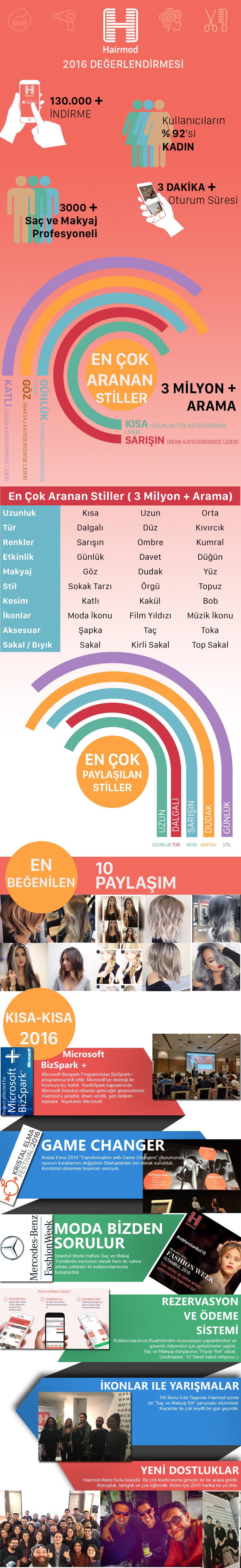 Hairmod'un 2016 sonunda bizimle paylaştığı infografik, sosyal ağ öncelikli pazar yerinin performansı kadar, ne tür verilerle çalıştığına ilişkin de fikir veriyor.