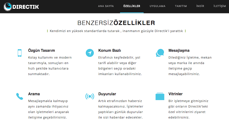 Directik, tahmin edeceğiniz üzere işletmelerin konum/adres ve telefon bilgilerini, eğer varsa fırsat ve kampanyalarını gösteriyor. Kullanıcıların işletmelere direkt mesajla ulaşmasına da imkan tanıyor. Tabii bu özelliklerin bazıları ücretli paket dahilinde sunuluyor ve ücretli üye olan işletmeler, satıcı panelinde ziyaret analizlerini görüp müşterilerle anlık iletişime geçebiliyor, vitrin ve profillerini düzenleyebiliyor.