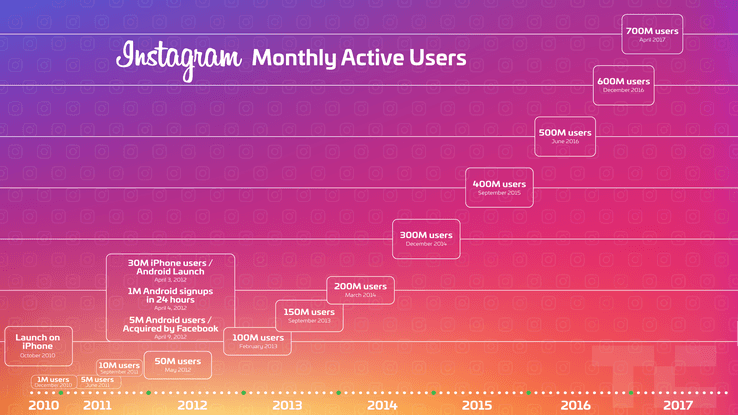 En hızlı büyüyen sosyal ağlardan biri olan Instagram, 700 milyon aylık aktif kullanıcı sayısına ulaştı. Henüz aralık ayında 600 milyon barajını geçen Instagram, yaklaşık 4 ay içinde 100 milyon yeni kullanıcı kazanmış oldu. Snapchat benzeri Hikayeler özelliğini kullanıma sunmasından bu yana hızlanarak büyümeye devam Instagram, kısa süre içerisinde 1 milyar kullanıcıya ulaşacak gibi görünüyor.
