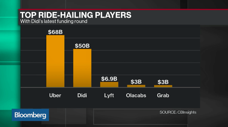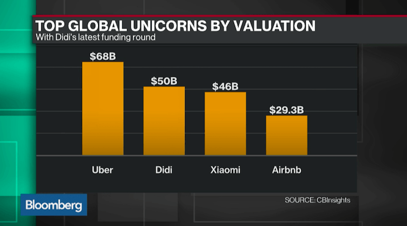 Didi, şimdiye kadar Apple, China Life gibi yatırımcıları arkasına almış ama son yatırım turunda 50 milyar doların çok altında, 28 milyar dolardan değerlenmişti. Yeni yatırım turu beklendiği gibi gerçekleşirse Didi, 68 milyar dolar değerlemeli Uber'in ardından ikinci sıraya yerleşecek. Aşağıdaki tabloda Didi'yi Xiaomi ve Airbnb takip ediyor ama Alibaba'nın iştiraki Ant Financial'ın da 50 milyar dolar değerlemeden yatırım aldığını hatırlatmadan geçmeyelim.