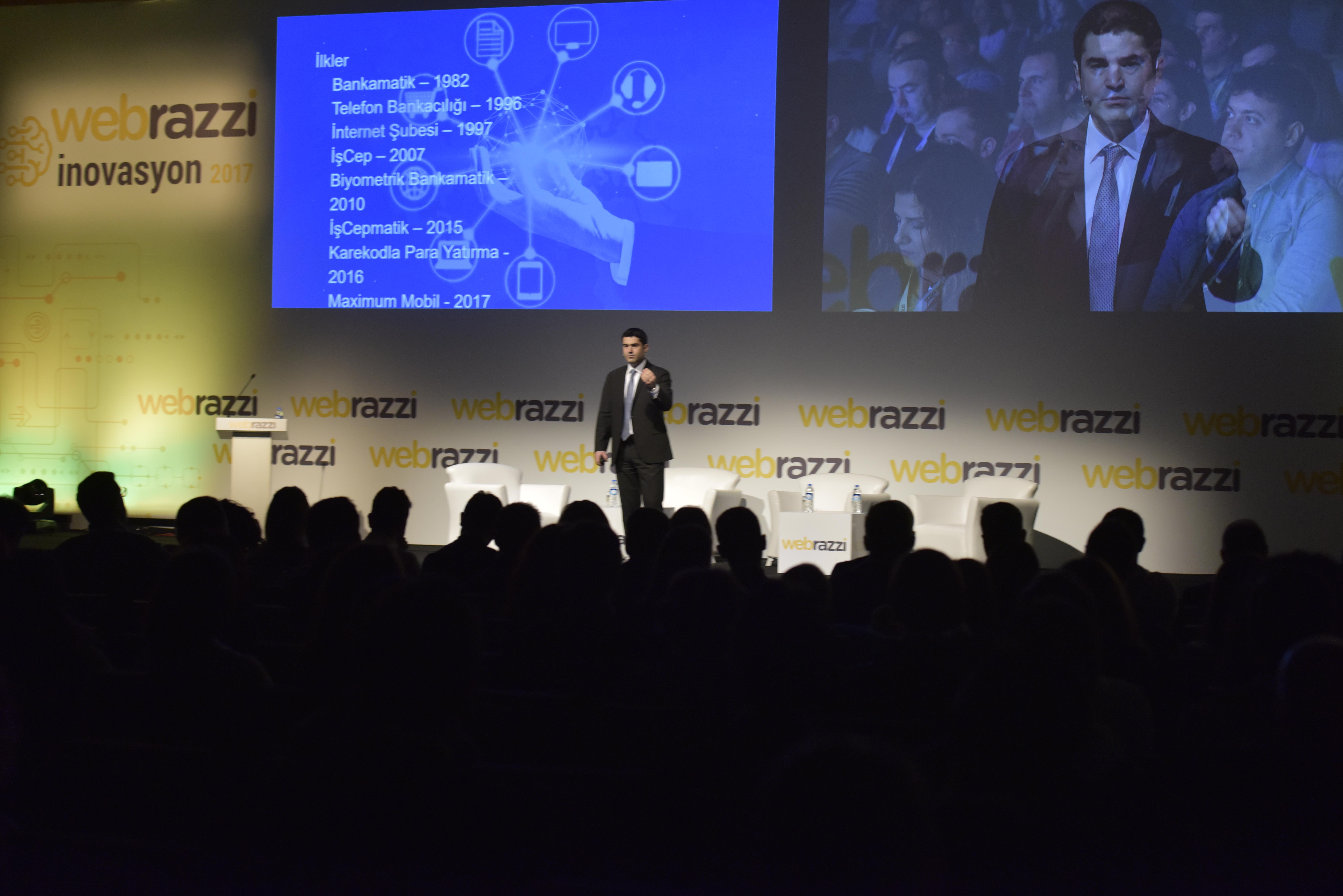 Webrazzi İnovasyon 2017 konferansının ilk konuşmacısı Türkiye İş Bankası Dijital Bankacılık Müdürü Mehmet Fahri Can, İş Bankası'nın inovasyon dolu son 30 yılı hakkında önemli bilgiler paylaştı. Türkiye İş Bankası'nın finans sektöründe gerçekleştirdiği ilklerden söz ederek konuşmasına başlayan Can, Türkiye'deki ilk offline bankamatiklerin 1982 yılında İş Bankası tarafından kullanıma sunulduğunu hatırlattı.