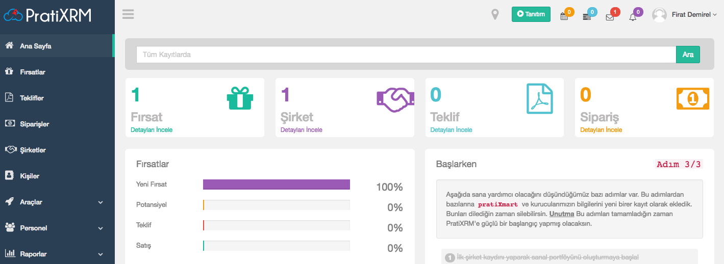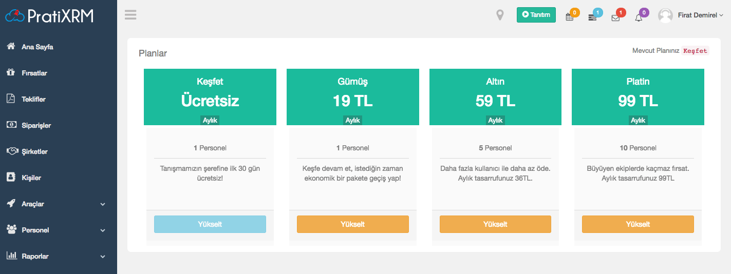 SaaS (hizmet olarak sunulan yazılım) tabanlı girişim olan PratiXRM, 19 TL+KDV'den başlayan aylık üyelik paketleriyle müşterilerine ulaşıyor. Ancak ücretli abone olmadan önce, 30 günlük deneme süresi boyunca sistemi deneyebiliyorsunuz.