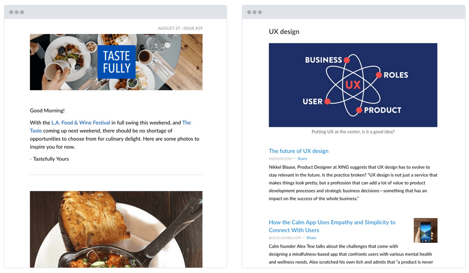 Aşağıda basitten profesyonele doğru seçenekleri sıralayacağım, ama ben Revue kullanıyorum. Revue hem kolay kullanımı hem de entegrasyonlarla öne çıkıyor. Öyle ki; Revue’nin Chrome ve iOS uygulamalarıyla beğendiğim içerikleri platforma kaydedip, editörün başına oturduğumda Medium ve Twitter beğenilerim veya Product Hunt "upvote"larımla beraber görebilmem mümkün oluyor.