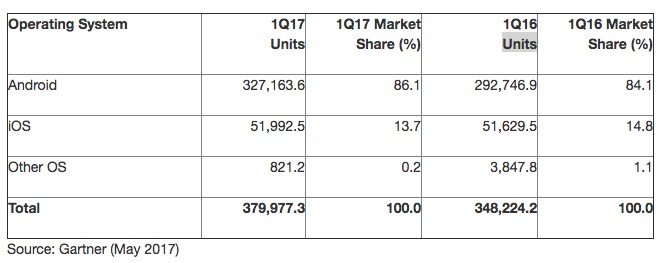 2017'nin ilk çeyreğindeki akıllı telefon satış rakamlarını açıklayan uluslararası araştırma şirketi Gartner, akıllı telefon satışlarının bir önceki yıla oranla yüzde 9 arttığını duyurdu. Çin'li firmalarının yükselişinin devam ettiği 2017'nin ilk çeyreği, Samsung ve Apple için ise olumsuz sonuçlandı.