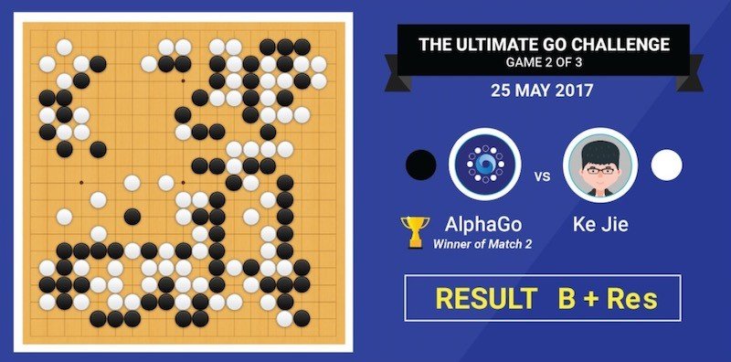AlphaGo-Ke Jie, müsabakasına dönecek olursak; Ke Jie, ilk maçı kıl payı kaybetmiş ve AlphaGo'nun zekasından övgüyle bahsetmişti. İkinci maçta ise AlphaGo'ya göre Ke Jie başlangıçta kusursuz bir oyun çıkarmş..
