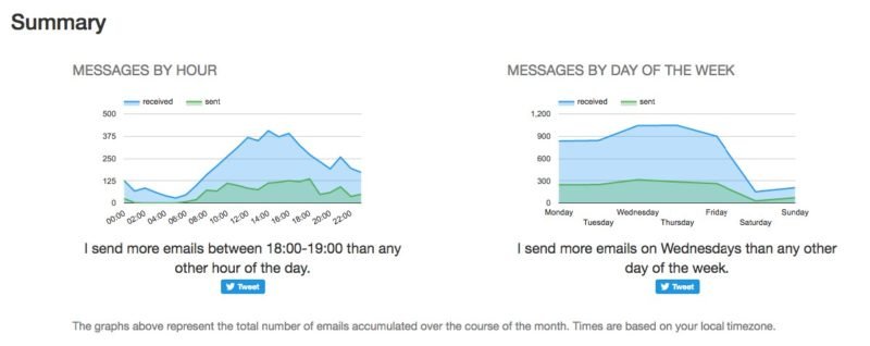 Londra- Surrey arasında toplu taşımayla seyahat eden Hernandez, e-maillerin çoğunu işle ev arasında geçirdiği bu sürede, trende yanıtlıyor. Bu da, diğer zamanlara kıyasla neden çoğunlukla 18:00- 19:00 saatleri arasında daha çok e-maile cevap verdiğinin göstergesi. Aynı zamanda Hernandez Çarşamba günleri diğer günlere göre daha çok e-mail gönderiyor.