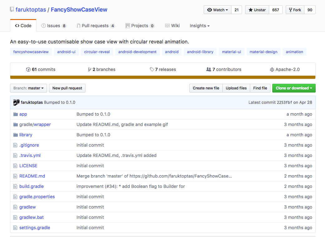 Yaklaşık 3 ayda GitHub üzerinde 600'den fazla star toplayıp 90 kez fork edilen FancyShowCaseView isimli kütüphane, Android uygulamalarına kolayca özelleştirilmiş animasyon (ShowCase) eklenebilmesine yarıyor.