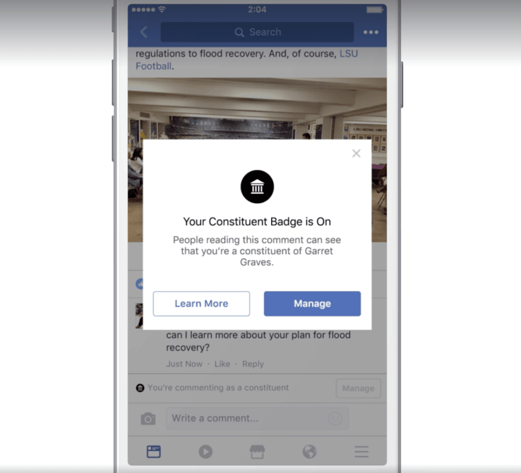 Facebook bu yıl kullanıcıların hükümet temsilcilerine sosyal medyadan ulaşabilmelerini kolaylaştıran birçok özellik geliştirmişti. Hükümet temsilcileri ile kullanıcıları yapılan paylaşımlar aracılığıyla bir araya getiren özelliğin yanısıra, Town Hall gibi haber akışıyla bağlantılı diğer sosyal iletişim ağlarının da dahil olduğu birçok özellik kullanıcılara sunulmuştu.