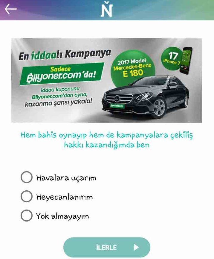 Bilyoner.com için markanın belirlediği profildeki Napolyon üyelerine eğlenceli 3 sorudan oluşan “Gizli Görev” tanımında sorular sorulmuş. En son soruda “Hem bahis oynayıp hem de çekiliş hakkı kazandığımda ben” için “Havalara uçarım” ve “Heyecanlanırım” yanıtlarını veren kişiler, firmanın kampanya sayfasına yönlendirilmiş.