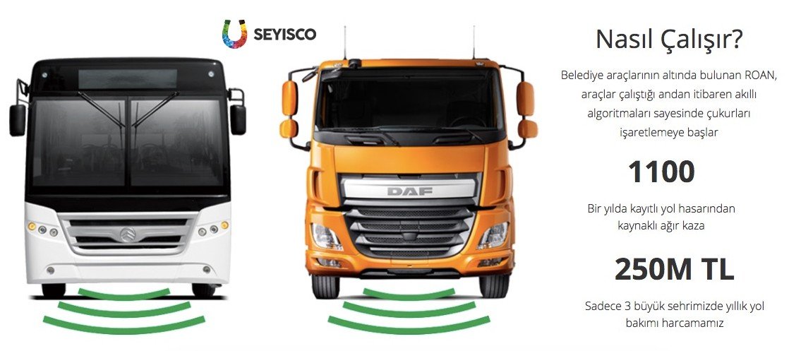 Dört kişilik bir ekibin 2 yıllık bir emeğiyle vücut bulan Seyisco, aslında göz ardı ettiğimiz önemli bir soruna eğiliyor. Çeşitli araçlara entegre ettiği sensörlerle yol hasarlarını tespit ediyor. İlk ürünü ROAN ile sensör tabanlı bir yol kalite kontrol sistemi sunuyor. Bu sayede belediyelerin yollardaki sıkıntıları çözmesini ve kötü yol koşullarından doğan sorunları tarihe gömmeyi hedefliyor. Seyis.co, şu anda 7cm ve daha büyük çaplı, 3cm ve daha derin çukurları sağlıklı bir şekilde algılayabiliyor. Kasis gibi yanlış pozitifleri de filtreleyebiliyor.