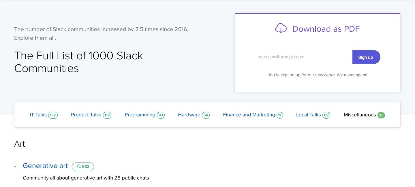 1000 Slack Topluluğu listesine buradan ulaşabilir, dilerseniz .pdf olarak indirebilirsiniz.