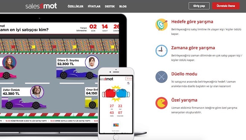 Orta ve büyük ölçekli firmalar için bulut tabanlı hazırlanan Salesmot'ta süreç şöyle işliyor: Firma yöneticisi hedef, zaman ya da zaman & hedef olarak bir yarışma oluşturduktan sonra yarışma ödülünü ve yarışmaya katılacak olan personelleri belirliyor. Personellere bir bildirim e-postası gidiyor ve ardından rekabet başlıyor.
