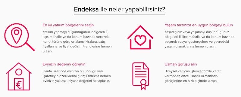 Eğer herhangi bir gayrimenkulun satış veya kira değerini merak ediyorsanız hemen Google veya Facebook hesabınızla Endeksa.com'a üye olup teknolojinin nimetlerinden faydalanabilirsiniz.