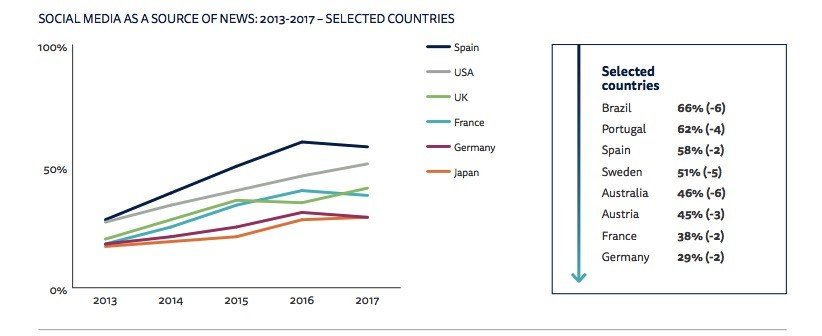 Webrazzi'de her yıl yer verdiğimiz Reuters Institute for the Study of Journalism imzalı Digital News Report'un 2017 sonuçlarındaki en dikkat çekici sonuçlardan biri bu. Aralarında Türkiye, ABD, Kanada, Avrupa ülkeleri, Singapur ve Hong Kong'un olduğu toplam 36 ülkeden 70 bin kişiyi kapsayan araştırmaya göre online haber tüketiminde sosyal ağların büyümesi yavaşlarken, mesajlaşma uygulamaları yükselişe geçiyor. ABD dışında İspanya, Fransa ve Almanya gibi pazarlarda sosyal medya, Facebook'un algoritmalarını haberler yerine paylaşımlar lehine değiştirdiği 2016 yılından bu yana belirgin bir düşüş yaşıyor.