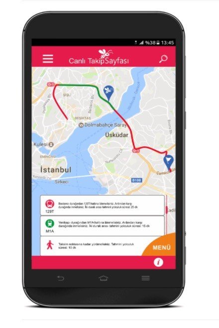 - Çok amaçlı optimizasyon özelliğimiz ile kullanıcıdan sadece nereden nereye gideceğinin bilgisini alarak planlama yapmıyoruz. Kullanıcı yolculuğu yapacağı günü, saati diğer uygulamalarda olduğu gibi belirtiyor. Ama bizim uygulamamızda ayrıca duraklar arası aktarımda en fazla yürümek istediği mesafeyi, ve beklemek istediği maksimum süreyi kullanıcıdan alıyor ve buna göre planlama yapıyoruz.