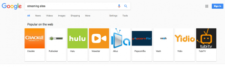 Yazılım sürecinde Google bir şeyleri atlamış olmalı ki, yayın konusunda arama yapıldığında Hulu ve Crackle gibi yasal yayıncı alternatiflerinin yanında Putlocker ve Alluc gibi çok da ünlü olmayan korsan platformların yer aldığı görülüyor.