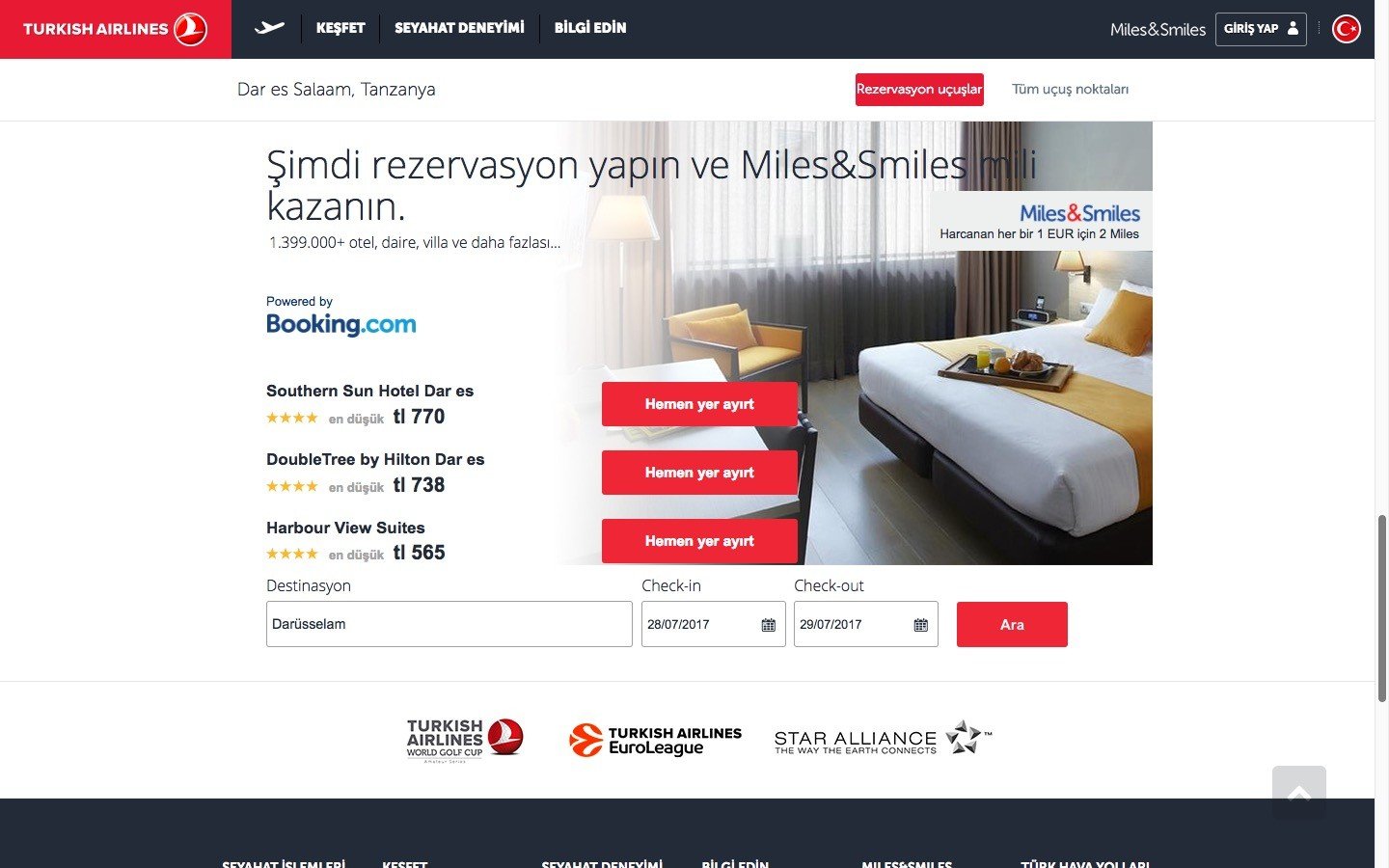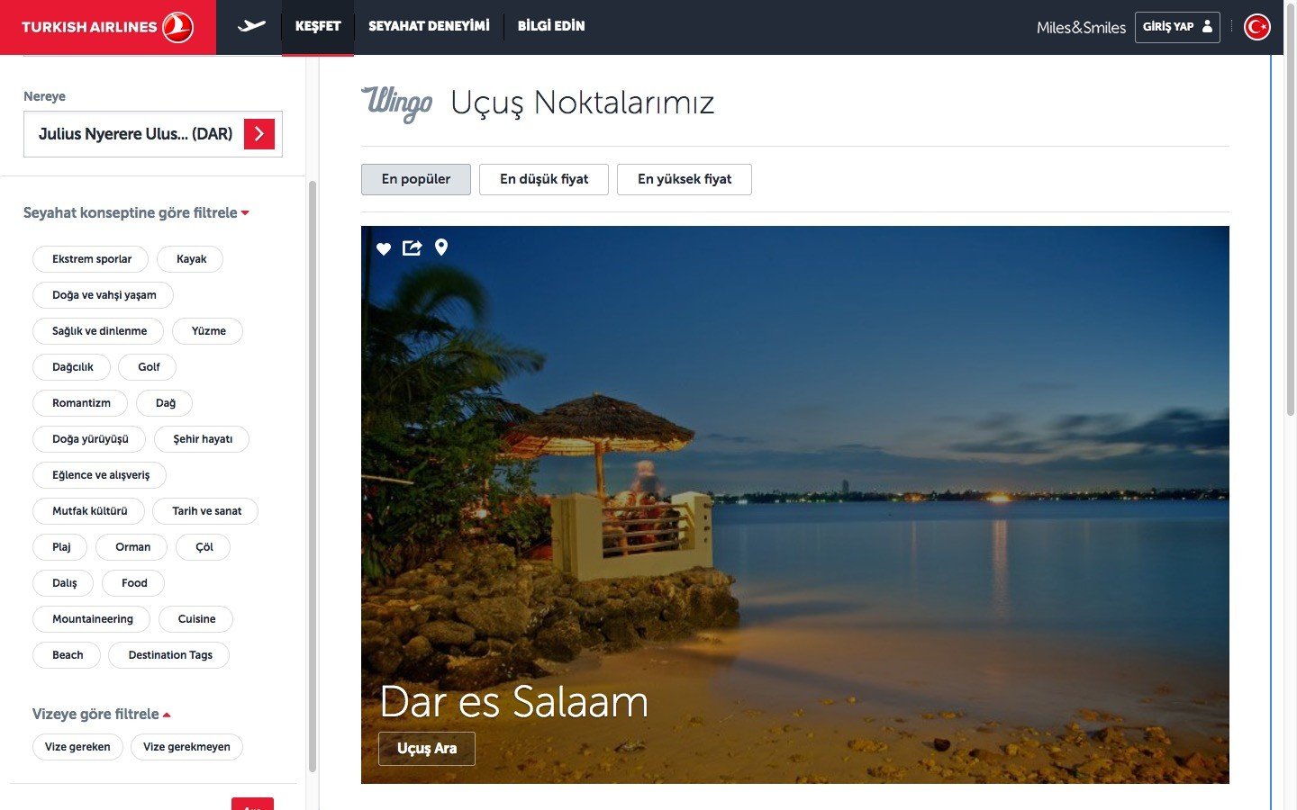 Seçilen hedefteki şehirlere belirgin şekilde rezervasyon yönlendirmesi de yapan Türk Hava Yolları, kullanıcı girişi yaptığınız takdirde gidilecek yerleri favorilerinize ekleme şansı da sunuyor.