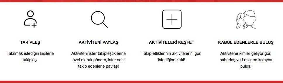 Simge İçen ve İdil Mayzel tarafından kurulan Letz, tamamlanan etkinlikleri de bir arşiv niteliğinde saklıyor. Dolayısıyla Letz profilinize bakarak kiminle en son neler yaptığınızı ve ne kadar sosyal olduğunuzu görebiliyorsunuz.