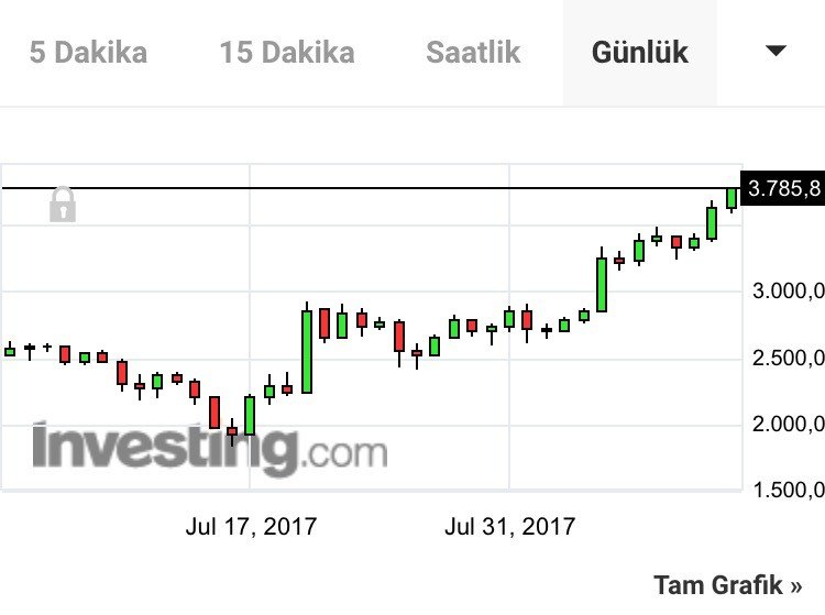 Bitcoin, yükselişini sürdürüyor. Bugün itibari ile yeni bir rekor kırıldı ve sanal para birimi 3.750 doları geçmeyi başardı. Yaklaşık yüzde 10'dan fazla yükselişle 3.785 dolardan işlem görüyor bir BTC.