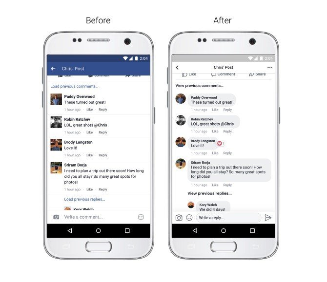 Bunun yanısıra Facebook'ta olduğunun aksine bir yorum dizisinin altına yeni bir yorum dizisi açmanız mümkün değil. Diğer taraftan Facebook da haber akışının yorumları okumayı kolay hale getirecek şekilde iyileştirileceğini söylüyor. Aşağıda görebileceğiniz gibi, Facebook'un önümüzdeki haftalarda devreye alacağı tasarım iyileştirmeleri, yorumları daha belirgin bir şekilde öne çıkarıyor.