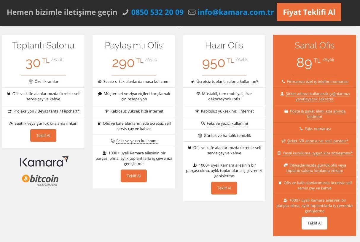 Kamara hakkında paylaşmaya değer bir bilgi ise bitcoin ile ödeme alıyor oluşu. Her şekilde kimliğinizi ibraz gerekecek ama Kamara'dan ofis kiralamak isterseniz halen en popüler ve yüksek hacimli kripto para olan bitcoin ile ödeme yapmanız mümkün.