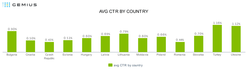 Bu yıl tıklama oranın da yaşanan artış konusunda, ülkelere bağlı tıklama oranına baktığımızda Türkiye'nin öne çıktığını görmemiz mümkün. Tıklama oranında en yüksek değere sahip olan Türkiye'yi, yüzde 1,12 ile Ukrayna takip ediyor.