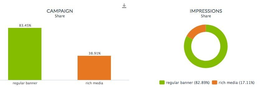 Banner reklamların ağırlığı kampanyalarda yerini korurken ardından gelen Rich Media oluyor. Gösterimde ise banner reklamlar oldukça önemli bir yere sahip, yukarıda grafikte olmayan bir diğer önemli detaysa Rich Media tıklama oranının düşmüş olması. Tıklama oranı yüzde 2,23 olarak açıklanan Rich media geçtiğimiz senenin aynı dönemine göre 35 baz puan daha az tıklamaya sahip.