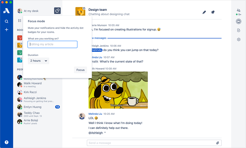 Stride'ın güzel özelliklerinden biri de çalışanların daha kolay odaklanabilmesi için bildirimlerin sessize alınabilmesi. Stride'ın "Focus" modu Slack'in "Do Not Disturb" moduna oldukça benziyor. Ancak Stride'da çalışmanıza daha kolay odaklanabiliyorsunuz. Ayrıca ekip arkadaşlarınıza ne üzerinde çalıştığınızı bildirebiliyorsunuz. Böylece sessiz olmanız konusunda ekip arkadaşlarınızla bir sıkıntı yaşamıyorsunuz.