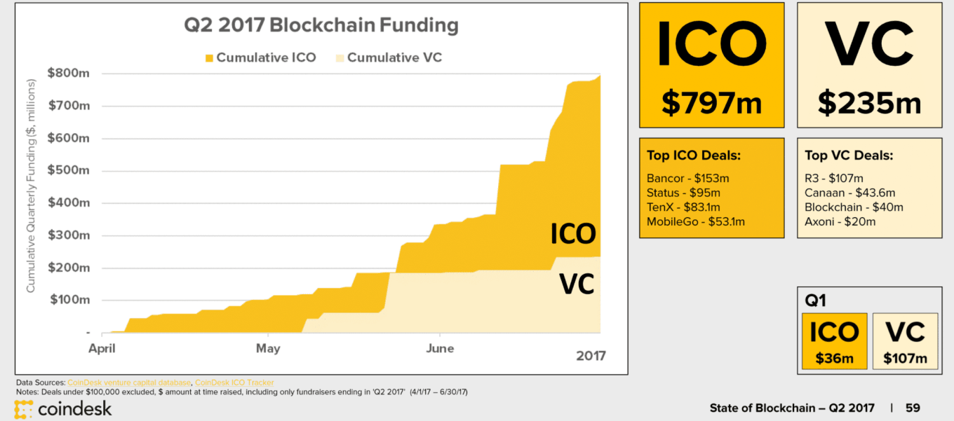 Çin'in bu hafta ICO'lara karşı başlattığı soruşturma ve yasağın ardından Hong Kong'dan gelen "balon endişesi" haberleri ICO'lar için bir sonun başlangıcı gibi algılansa da 2017 yılının ikinci çeyreğinde ICO aracılığıyla toplanan paralar 800 milyon doları aşarak yeni bir rekora imza attı.