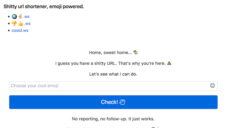 Yayınlandığı günden bugüne 10 binin üzerinde url kısaltılan coool.ws ile dilediğiniz emojiyi kullanarak url kısaltması yapabilirsiniz. Aynı zamanda bir altyapı olarak konumlanabilen coool.ws, yaklaşık 4 ay önce GitHub'da açık kaynak olarak yayınlanmış bir kütüphane.