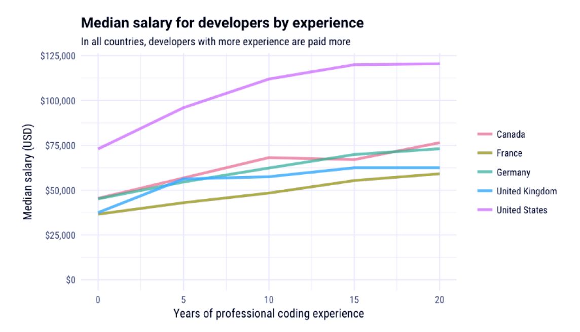 Eğer siz de yazılım işinde kimin ne kadar kazandığını merak ediyorsanız stackoverflow.com/jobs/salary sayfasını ziyaret edebilirsiniz. Aşağıdaki grafikte de ülkelere göre maaşların nasıl değiştiğini kabaca görebilirsiniz.