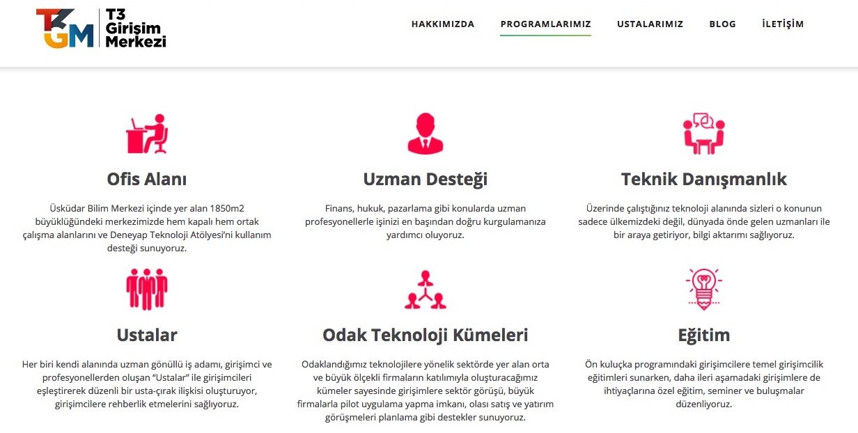 Otonom teknolojiler, yapay zeka, nesnelerin interneti, ağ teknolojileri ve eğitim teknolojileri gibi 5 önemli teknolojiye öncelik veren T3 Girişim Merkezi'nin konumlandığı yer ise Üsküdar Bilim Merkezi. Yirmiden fazla girişime ev sahipliği yapmak isteyen T3GM, toplam 1800 m2’lik geniş bir alana yayılıyor. Girişimcilere deneyap teknoloji atölyesi, toplantı ve seminer odaları, kafeterya gibi tüm altyapı imkanlarını sunuyor..