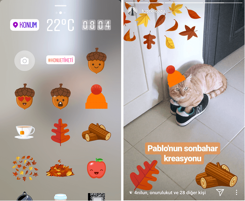 Instagram paylaştığı gönderide mevsimlere özel stickerlar ile ilgili olarak: "Eğer kuzey yarım küredeyseniz, yüz ifadelerine sahip meşe palamutlarından, düşen yapraklardan, berelerden ve çay fincanından oluşan yeni samimi bir sticker paketine sahip olacaksınız. Çiçekler, uçurtmalar ve mutlu filizler ise güney yarım küredekilerin baharın gelişini kutlamasına yardımcı olacak." ifadesini kullandı.