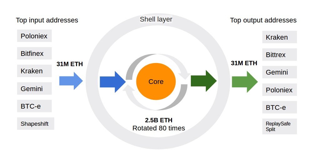Cber blog, araştırması sonucunda kripto paraları geçici adresler arasında taşıyan bir "Ethereum mixer" çıkarımında bulunuyor. Ethereum mixer'ın önemli olmasının nedeni ise ethereum kripto para biriminin oldukça büyük bir kısmını yönetmesi.