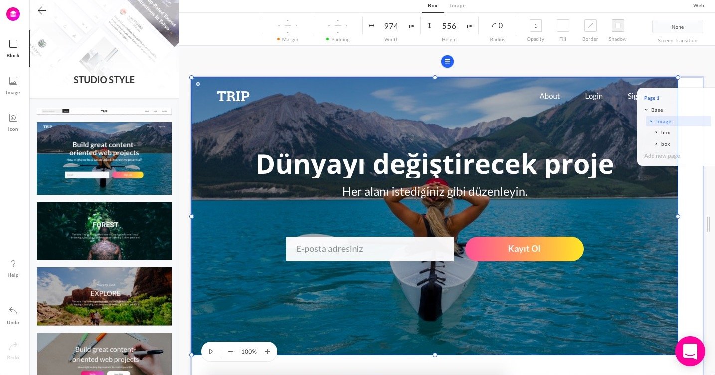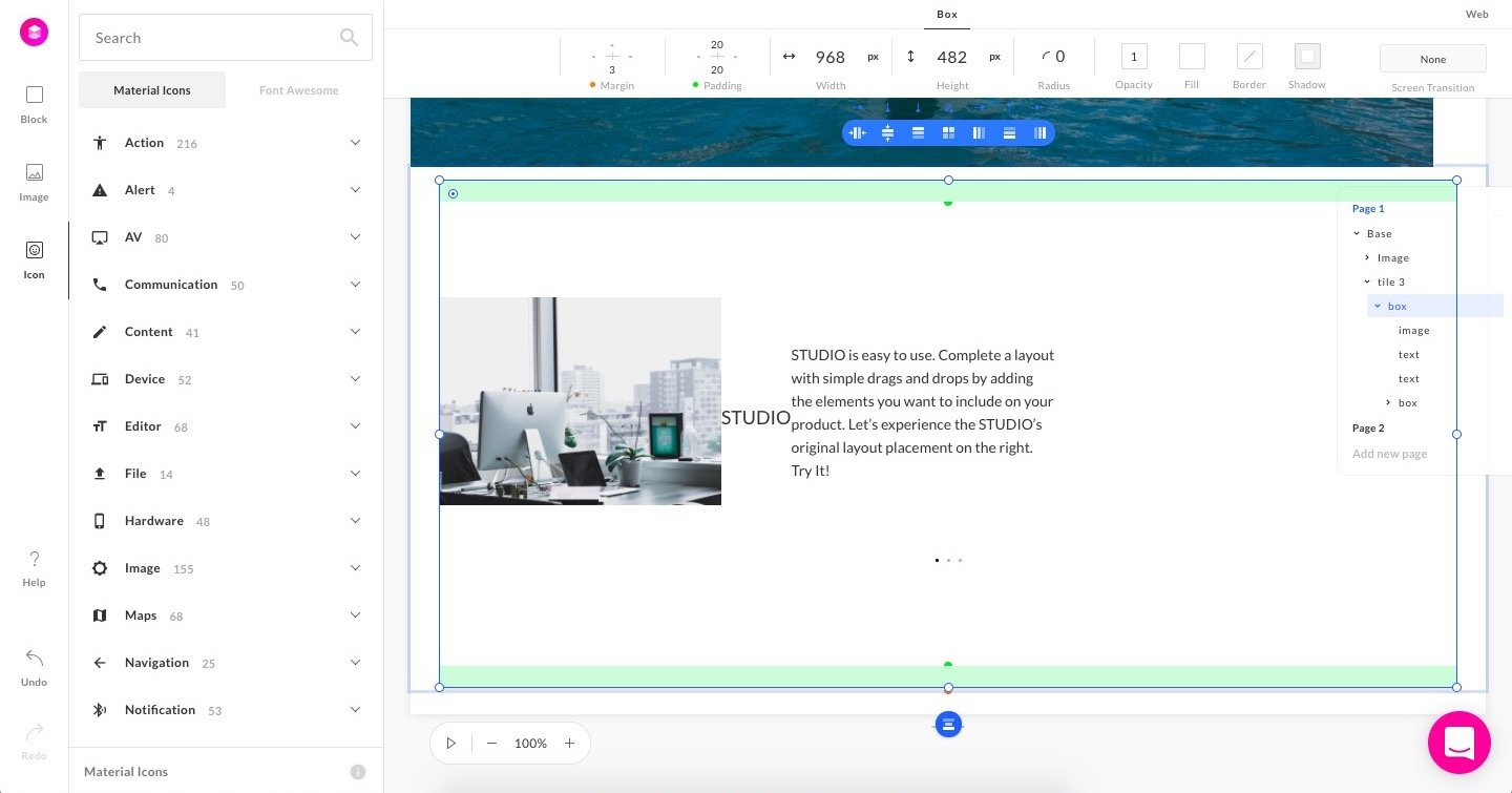 Studio Design, basit tabirle tarayıcı üzerinde uygulama/site arayüzü yapmanızı sağlayan bir araç. Aklınızdaki ürünü herhangi bir tasarım programı veya kodlama bilmeden gerçeğe yakın şekilde modellemeniz mümkün. Tek yapmanız gereken istediğiniz tasarım bileşenlerini seçmek ve sürükle-bırak yöntemiyle tasarım zeminine yerleştirmek.