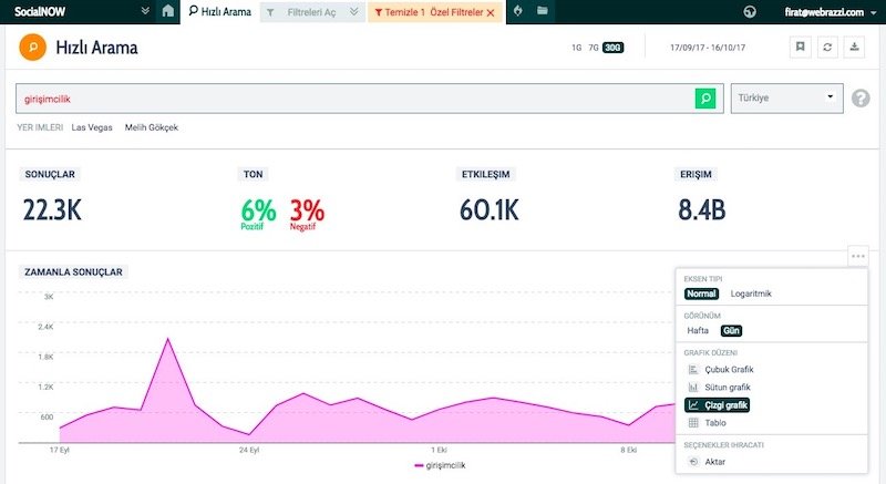 SocialNOW, 150+ dilde, 150 milyon site taraması yapıyor ve 500'den fazla filtreleme seçeneği ile gündem analizinde derinleşmenizi sağlıyor. Tabii sosyal medyadaki içerik kirliliğinin yanıltıcı sonuçlarına karşı dikkatli olmak gerekiyor.
