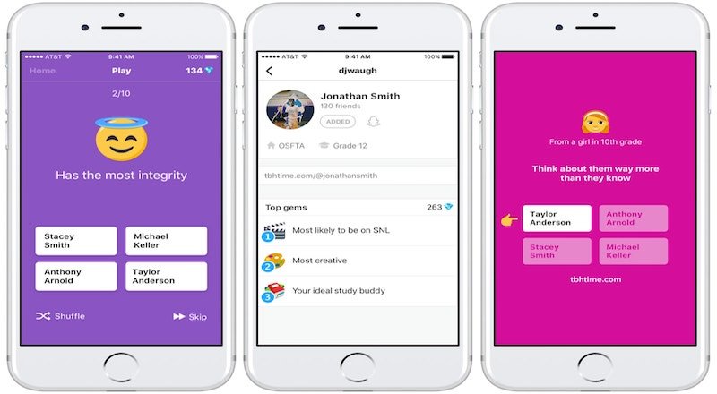 Sadece olumlu yorumlara odaklanan uygulama, özellikle ergenlik çağındaki gençler arasında oldukça popüler. tbh şimdilik ABD'nin belli eyaletlerinde iOS ve Android cihazlardan kullanılabiliyor.