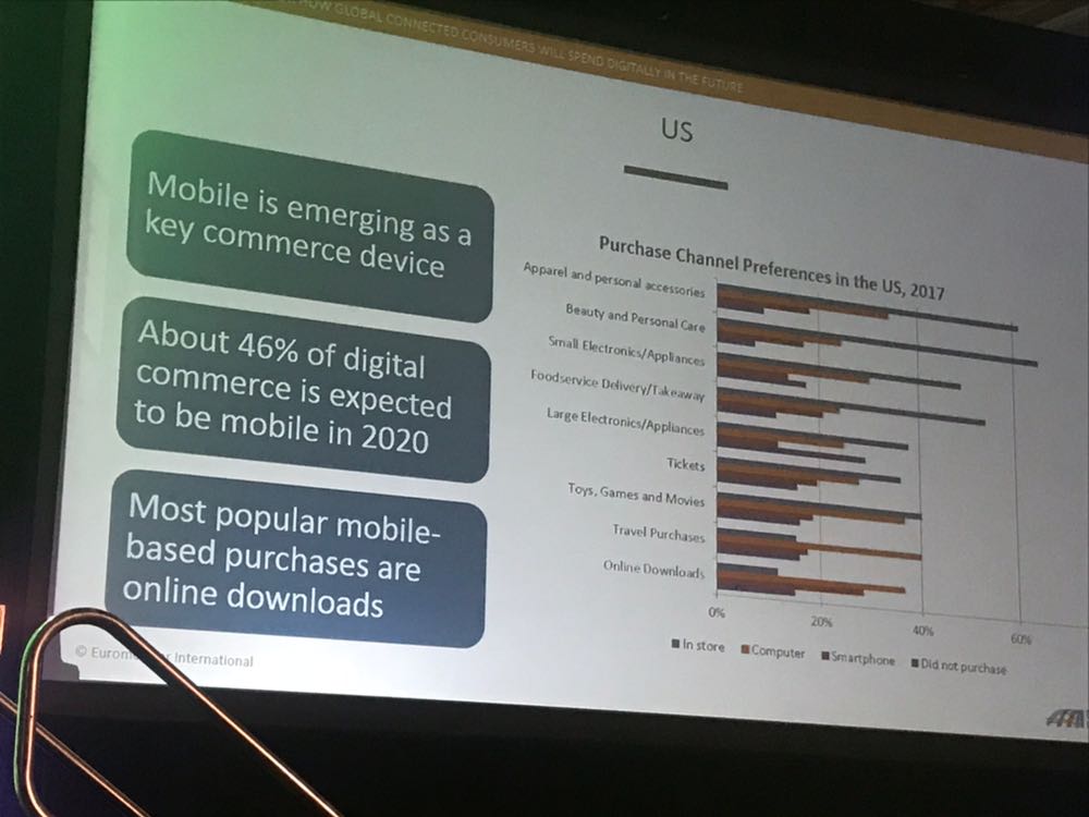 2020 yılında Amerika, akıllı telefonlar diğer mobil cihazlar arasında en çok kullanılan araçlar olacak ve dijital ticaret kullanımı yüzde 45'lik bir orana ulaşacak. Tüketiciler bir mağazaya sadece bir ürünü denemek veya birebir görmek için gidiyorlar. Mağazaların dijital tarafı online uygulama indirme işlemleri veya mobil satın alımlar olacak. Amerika'nın en önemli örneği bu alanda tabi ki Amazon. Özellikle kültür, sanat veya eğlence ürünlerinin indirilme oranı ve erişilebilirliği bu konunun en güzel kanıtı.