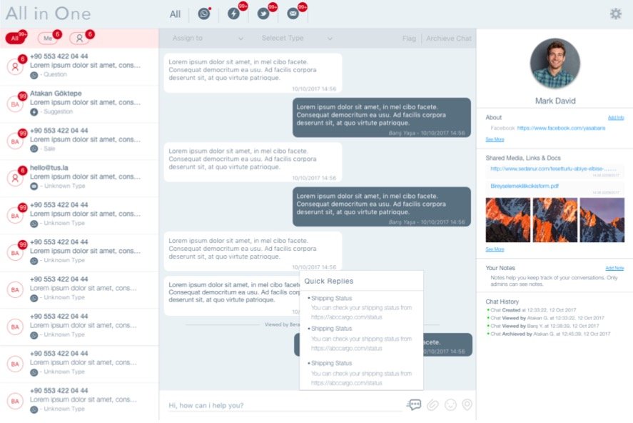 Tüm yazılı kanalları tek bir noktadan karşılamak için yaratılan All In One servisi yaklaşık 1 aydır Beta aşamasında. WhatsApp, Facebook Messenger ve e-posta için destek veren All In One By Tuşla servisi, yakın zamanda Canlı Chat desteğine de kavuşacak. Esnek bir altyapıya sahip olan All In One'nun en büyük avantajı ise firmaların All In One'da yer almayan tüm yazılı iletişim kanallarını kısa sürede All In One'a entegre edebilmeleri.