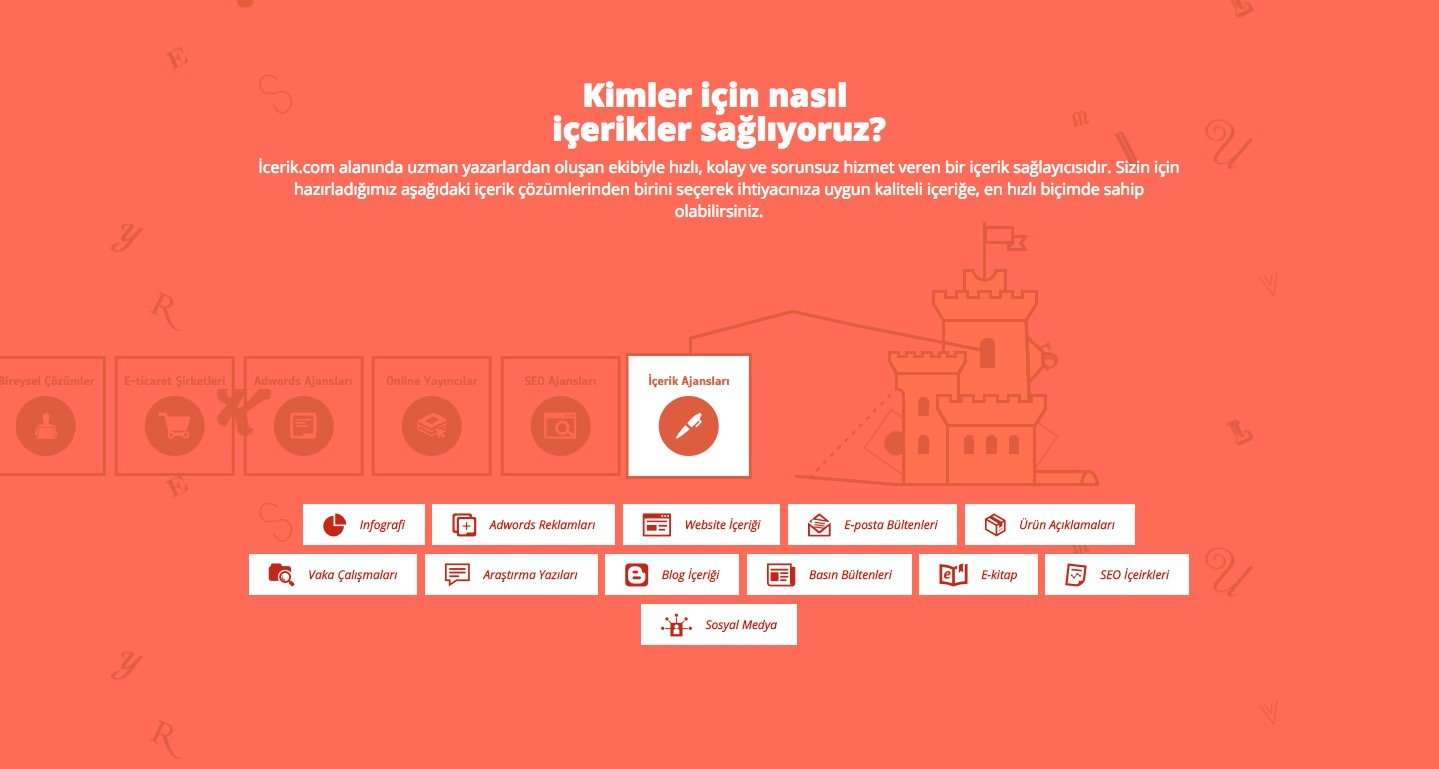 Kullanıcıları için infografik, adwords reklamları, website içeriği, e-posta bültenleri, ürün açıklamaları, vaka çalışmaları, araştırma yazıları, blog içerikleri, basın bültenleri, e-kitap, SEO ve sosyal medya içerikleri konularında yardımcı olan İcerik.com, toplamda 100'den fazla marka ile çalışmayı başardı.