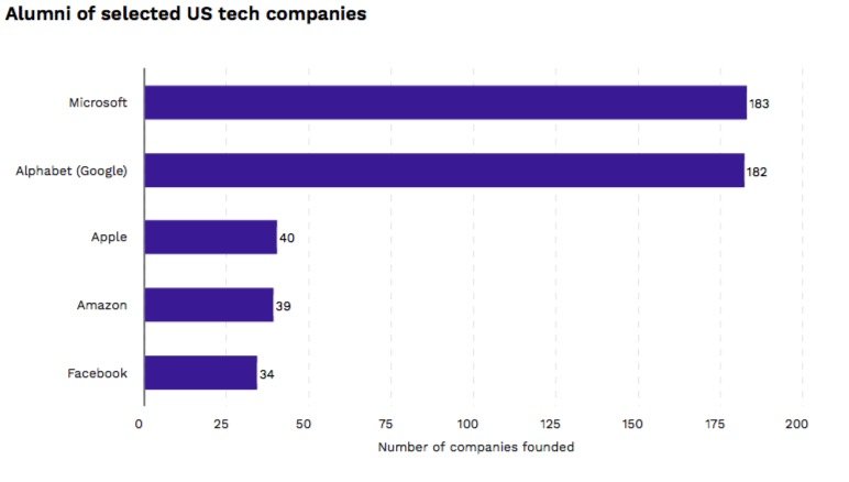 Avrupa'daki girişimlerin ABD merkezli büyük teknoloji şirketleri ile olan ilişkilerini de inceleyen rapor, pek çok girişimin daha önce Microsoft, Google, Apple ve Amazon gibi şirketlerde çalışan kişiler tarafından kurulduğunu belirtiyor.