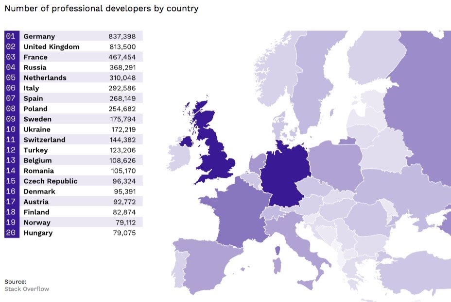 Teknoloji ve girişim dünyasının en nemli yapı taşlarından olan geliştiricilere de değinen rapor, Avrupa'da en çok geliştiriciye sahip olan ülkenin Almanya olduğunu ortaya koyuyor. Almanya'yı sırasıyla Birleşik Krallık, Fransa, Rusya ve Hollanda takip ediyor. Türkiye'nin ise bu sıralamada 12. sırada yer aldığını da ekleyelim. Oldukça uzun olan ve detaylı bilgiler paylaşan raporun tamamına aşağıdan ulaşabilirsiniz.