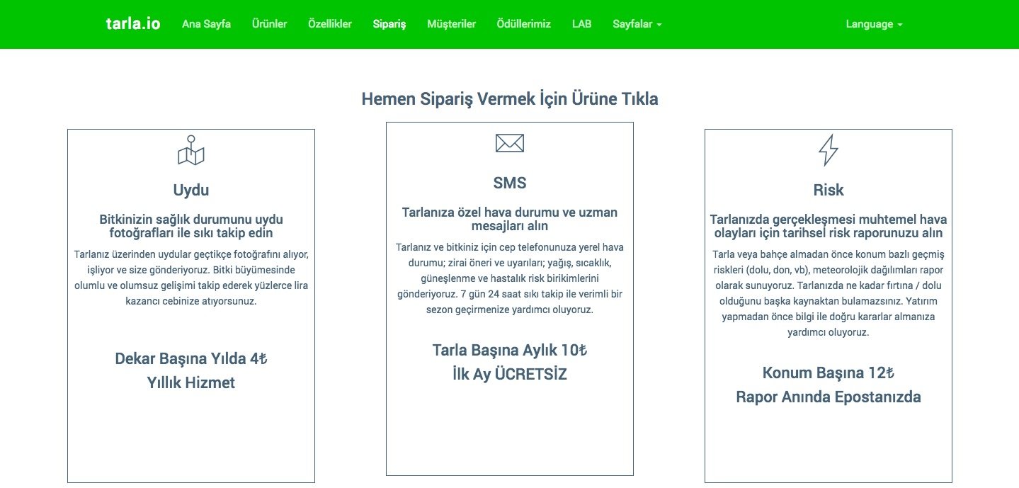 Sahip oldukları yıldırım tespit sensörü ve şiddetli hava olaylarını takip edebilmeleri sayesinde rakiplerinin önüne geçmeyi hedefleyen Tarla.io, Ar-Ge tarafında ise Avrupa Birliği, Tübitak ve Birleşmiş Milletler’in projelerinde sürekli olarak yarışıyor.