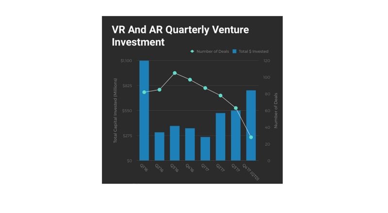 Analiz firması Digi-Capital tarafından ortaya çıkarılan verilere göre artırılmış gerçeklik ve sanal gerçeklik girişimleri 2017'de toplam 3 milyar dolardan fazla yatırım aldı. Bu verilere göre her ne kadar artırılmış gerçeklik ve sanal gerçeklik odağında uygulanabilen yeni fikirler azalmış olsa da, bu alanda yapılan yatırımlar büyümeye devam ediyor.