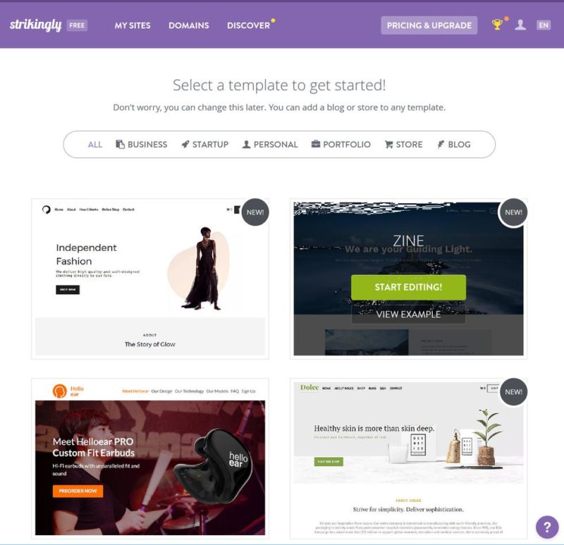 Strikingly, kodlama ve tasarım bilgisine gerek duymadan internet sitesi oluşturabildiğiniz bir platform. Tasarımlarınız otomatik olarak mobilde ve tablette de çalışabiliyor. Görsel açıdan güzel bir siteyi 30 dakika içinde hazırlayabileceğinizi iddia eden Strkingly’nin ücreti hizmetlerinin çeşitliliğine göre ayda 20 dolara kadar çıkabiliyor.